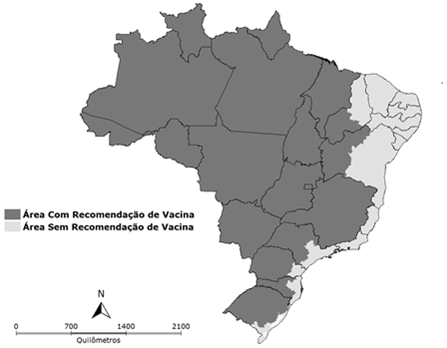 No Brasil, quase todos os estados têm regiões com recomendação de vacinação. Além do Espírito Santo, os estados que não têm recomendação para vacina são Rio de Janeiro, Ceará, Rio Grande do Norte, Paraíba, Pernambuco, Alagoas e Sergipe.