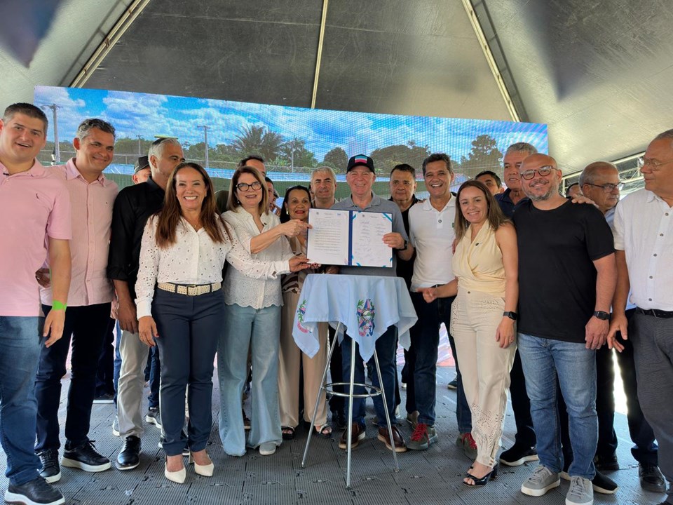 O governador também deu a ordem de serviço para a construção do Campo Bom de Bola no distrito de Água Boa. A obra será realizada pelo Governo do Estado, por meio da Secretaria de Esportes e Lazer (Sesport), com um investimento de R$ 838.142,70.