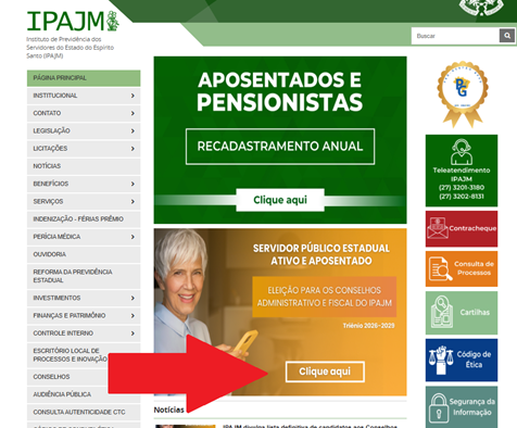 Após acessar o site do Instituto www.ipajm.es.gov.br, clique no banner da Eleição e, em seguida, em VOTE AQUI. Você será direcionado ao ambiente de votação.