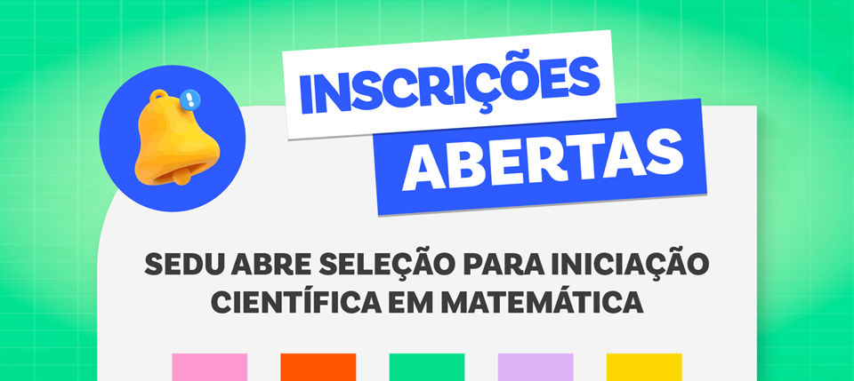 A Secretaria da Educação (Sedu) abriu, nesta terça-feira (14), as inscrições para o Projeto de Iniciação Científica de Matemática (PicMat), do Programa Matemática na Rede. O processo seletivo é destinado a estudantes das Redes Públicas Estadual e Municipais de Ensino do Espírito Santo, devidamente matriculados no Ensino Fundamental Anos Finais e no Ensino Médio. Os interessados devem se inscrever até o dia 30 de abril, por meio do site do Programa Matemática na Rede (clique aqui e acesse).