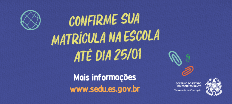 Os estudantes que participaram da Chamada Pública Escolar 2021, nas etapas de Rematrícula, Transferência Interna e Pré-Matrícula, precisam efetivar a matrícula na escola onde conseguiram a vaga até o dia 25 de janeiro. A última etapa, que acontecerá de 26 de janeiro a 12 de fevereiro, será a chamada dos alunos constantes na lista de suplência em escolas que apresentarem séries/anos com vagas, após o período de confirmação de matrícula.