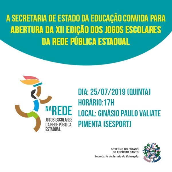 Cerca de 15 mil estudantes irão participar da XII edição dos “Jogos Escolares da Rede Pública Estadual” neste ano. A cerimônia de abertura será nesta quinta-feira (25), às 17 horas, no Ginásio Paulo Valiate Pimenta, em Vitória. O campeonato vai até o dia 06 de dezembro, com o encerramento e entrega de medalhas no Sesc de Guarapari. O regulamento geral está disponível no site da Secretaria de Estado da Educação (Sedu) pelo endereço eletrônico: CONFIRA AQUI!.