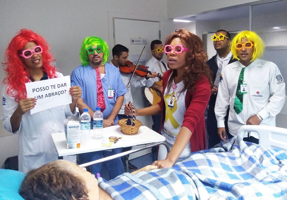 A iniciativa ganhou reforço com a participação de colaboradores de vários setores do hospital. De forma descontraída, com perucas e instrumentos musicais, eles visitaram os leitos das enfermarias e emocionaram as pessoas. Uma delas foi a diarista Luciane Mendes, que há 12 dias acompanha a mãe no hospital. “Essa é a primeira vez que vejo uma ação dessa dentro de um ambiente hospitalar. Fiquei muito feliz com a alegria do pessoal. A equipe está de parabéns”, disse.