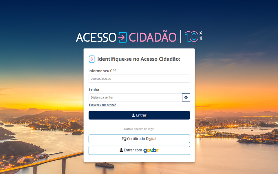 O Acesso Cidadão – ferramenta de login único para serviços digitais do Governo do Estado – está com uma nova versão (acessocidadao.es.gov.br) . E para comemorar os dez anos, a solução passou por modificações para ficar mais segura, simples e rápida. Todas as modificações priorizam a integração total ao GOV.BR (portal de serviços eletrônicos do Governo Federal).