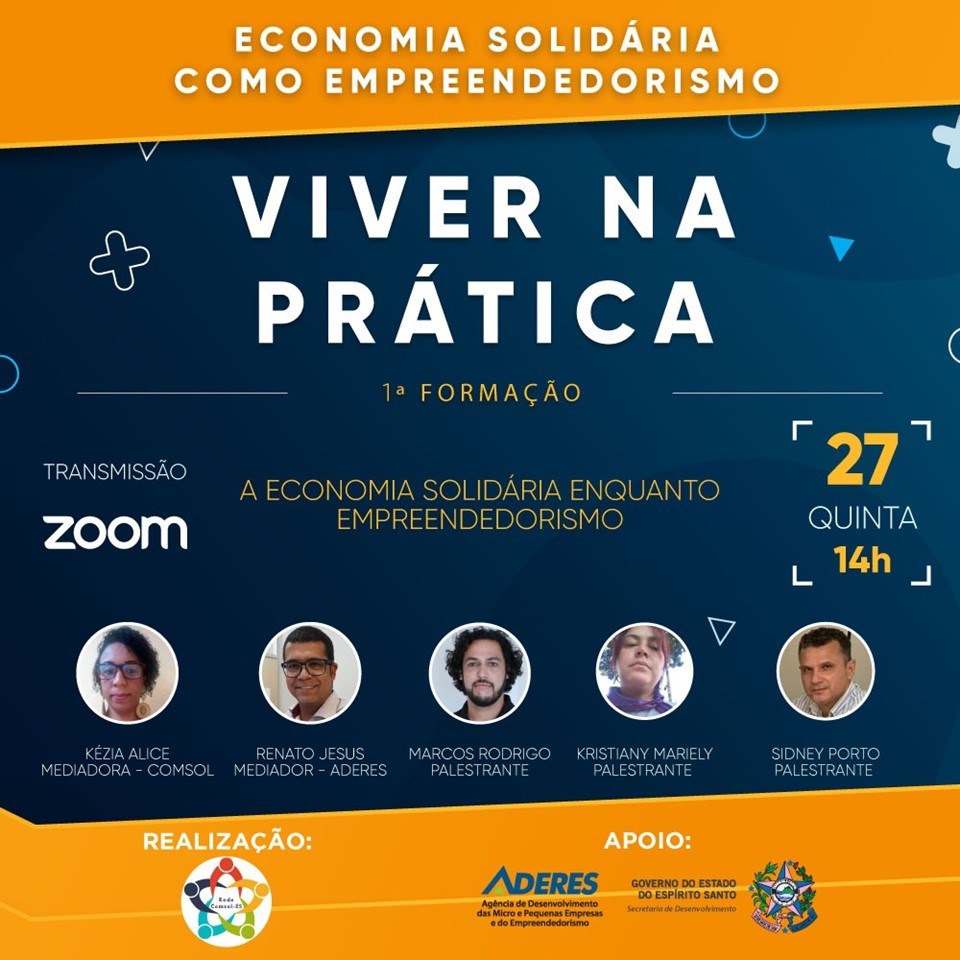 O Ciclo de formação, que faz parte de uma parceria entre a Agência de Desenvolvimento das Micro e Pequenas Empresas e do Empreendedorismo do Estado (Aderes) e a Rede Brasileira de Comercialização Solidária (Rede ComSol-ES), tem a finalidade de apresentar a economia solidária como alternativa econômica de negócio. Os encontros devem acontecer quinzenalmente, às quintas-feiras, sempre às 14h, por meio da plataforma Zoom.
