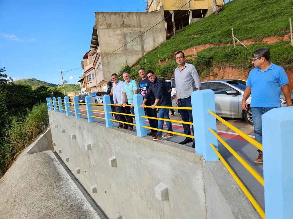 Também foram entregues as melhorias na Rua Francisco Arcon, no bairro Bilau. A via recebeu obras de drenagem e pavimentação, além da estabilização de talude com construção de dois muros de cortina atirantada e solo grampeado. Ambas foram executadas pela Prefeitura Municipal com recursos provenientes do Fundo Cidades - Adaptação às Mudanças Climáticas, totalizando mais de R$ 1,8 milhão em investimentos estaduais.