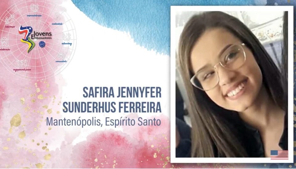 A Embaixada dos Estados Unidos no Brasil divulgou, na última sexta-feira (07), o resultado do processo seletivo do Programa Jovens Embaixadores 2021. A seleção contou com 10.119 inscrições, concorrendo a apenas 33 vagas. Entre os selecionados está a estudante Safira Jennyfer Sunderhus Ferreira, aluna da Escola Estadual de Ensino Fundamental e Médio (EEEFM) Job Pimentel, de Mantenópolis.