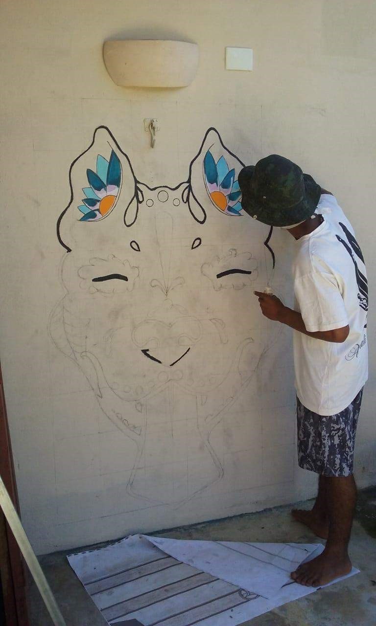 Foi na arte que o jovem encontrou a forma de se expressar. E assim tem feito sucesso, inclusive, entre os vizinhos, pintando paredes das casas ao redor da sua.