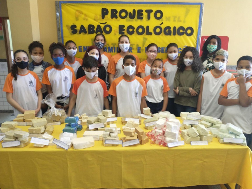 Os alunos da Escola Estadual de Ensino Fundamental e Médio (EEEFM) Quintiliano de Azevedo, localizada em Cachoeiro de Itapemirim, aprenderam a produzir sabão ecológico nas aulas de Ciências. Também foi proposto que, juntos com as famílias, em casa, produzissem o produto.