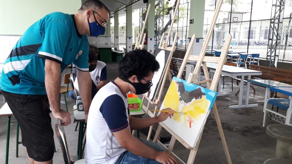 “Pelo fato de a maioria dos alunos só fazerem desenhos a lápis grafite, esse foi o primeiro contato com tintas, pincéis e telas, um momento de aprendizagem das técnicas de pintura, tipos de pinceladas, a quantidade a ser aplicada nas telas e como diluir a tinta de acordo com cada efeito de luz e sombra”, disse. O aluno Caio Batistuta Novaes Luna ficou tão empolgado que pintou três das 11 obras: "foi a primeira vez que pintei em acrílica sobre tela e produzi três obras. Estou muito feliz!"