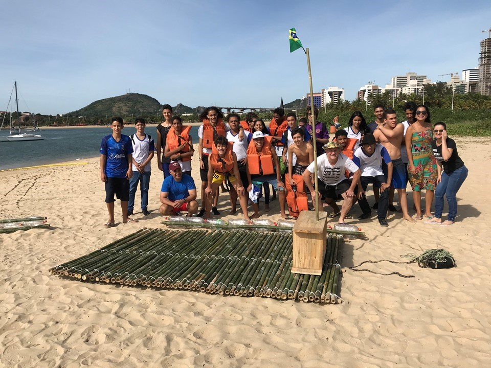 Com o objetivo de colocar em prática parte dos conhecimentos adquiridos ao longo do semestre, durantes as aulas da eletiva “Com quantos bambus se faz uma jangada”, os estudantes da Escola de Tempo Integral Professor Fernando Duarte Rabelo, em Vitória, construíram uma balsa e a encaminharam para a baía da cidade para testar sua flutuabilidade.