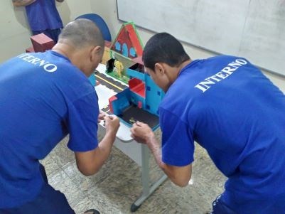 Os estudantes privados de liberdade, matriculados na Escola Estadual de Ensino Fundamental e Médio (EEEFM) Governador Lindenberg, localizada no município de Barra de São Francisco, aprenderam sobre formas geométricas, por meio de confecção de uma maquete, com a utilização de materiais recicláveis.