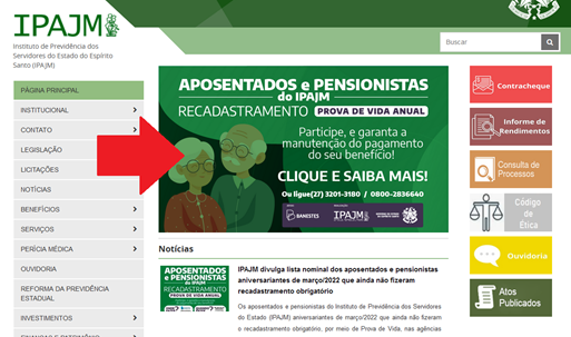 Todos os detalhes referentes a essa ação estão disponíveis na Portaria 03-R, bem como no site www.ipajm.es.gov.br, em banner específico do Recadastramento localizado na parte principal da página, conforme mostra a imagem abaixo.