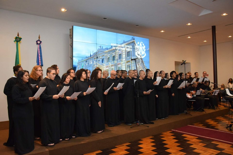 Dando início às festividades de fim de ano, o coral “Vozes em Busca da Liberdade”, formado por internos do sistema prisional, se apresentou no Salão São Tiago no Palácio Anchieta, em Vitória, no início da noite desta sexta-feira (06). Cerca de 40 apenados dividiram o palco com a Banda da Polícia Militar e entoaram canções natalinas, além de músicas populares. O governador Renato Casagrande e a vice-governadora Jaqueline Morais também estiveram presentes.