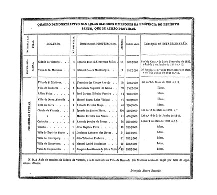 No relatório do presidente de Província, Jose Francisco de Almeida Monjardim, publicado em 1848, temos um exemplo dos dados que eram divulgados neste tipo de documento. No item “Tranquilidade Pública” afirma-se que o Espírito Santo se encontrava em perfeita tranquilidade e seus habitantes davam provas de respeito às instituições juradas e de que amavam a ordem pública e o adorado imperador.