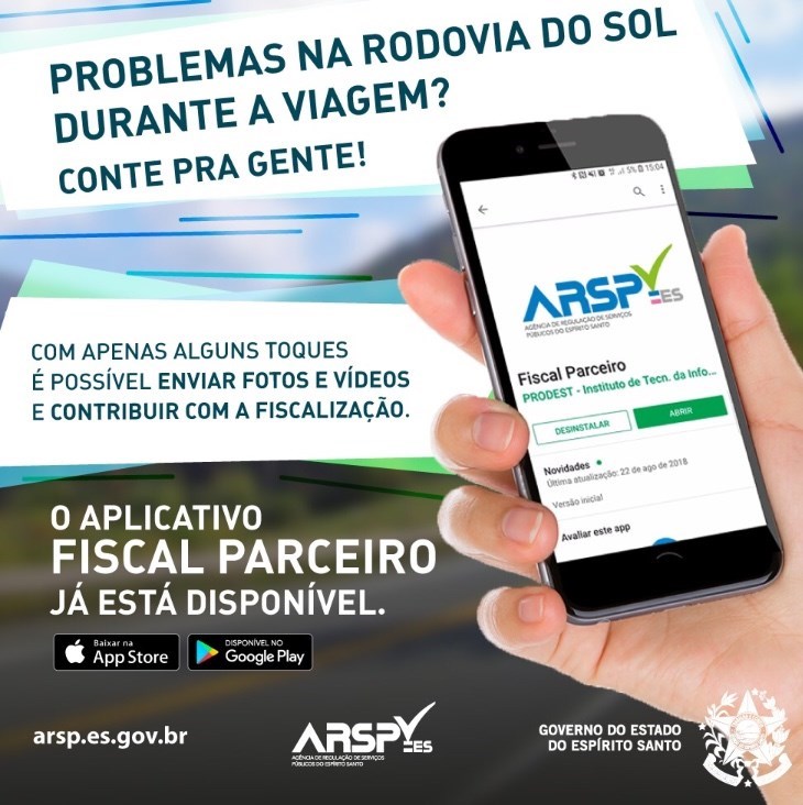 O “Fiscal Parceiro” é um aplicativo para celular criado com o objetivo de enviar denúncias, reclamações ou informações sobre os problemas encontrados no Sistema da Rodovia do Sol para a Agência de Regulação de Serviços Públicos do Espírito Santo (ARSP). O aplicativo está disponível nas lojas da Apple e Google Store.