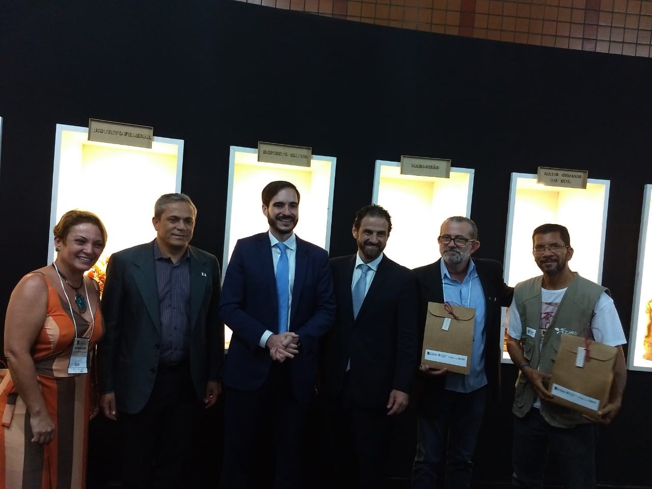 O artesão Edivan Rodrigo Lopes recebeu a homenagem das mãos do subsecretário de Desenvolvimento das Micro e Pequenas Empresas, Empreendedorismo e Artesanato, José Ricardo de Freitas Martins da Veiga. “Foi uma surpresa. Eu estava com vários outros artesãos quando vi a placa com meu nome escrito. Venho de uma família de artesãos, é uma alegria ver meu trabalho reconhecido”, comemorou. Ele está em Brasília com outros 11 capixabas a convite da Aderes.