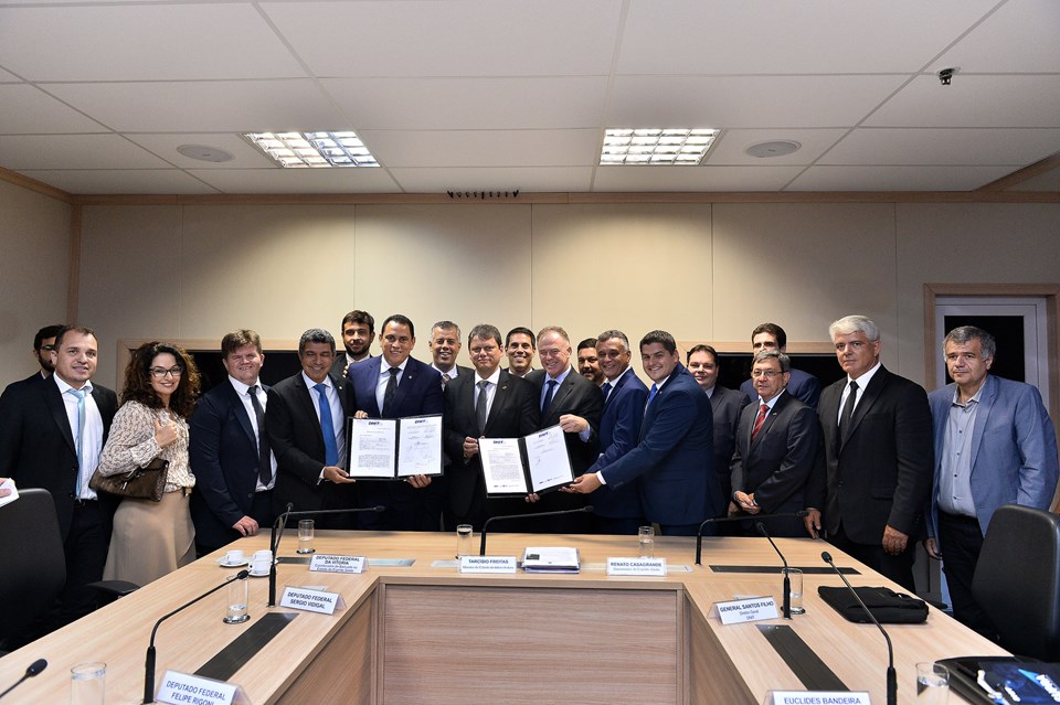 O governador do Estado, Renato Casagrande, participou, nesta terça-feira (30), da assinatura da ordem de serviço do Contorno do Mestre Álvaro, na Serra. O evento aconteceu no Ministério da Infraestrutura, em Brasília-DF. A obra é uma das prioridades do governador e deve garantir a melhoria no fluxo de veículos na região. A rodovia está orçada em R$ 290 milhões e terá 19,7 quilômetros de extensão.
