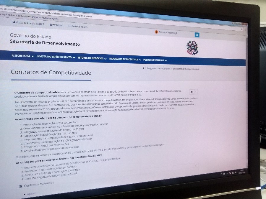 Na atualização, a empresa vai acessar o site www.sedes.es.gov.br, clicar em “Programas de Incentivo”, “Contratos de Competitividade” e “Formulários”, para preencher os dados online.