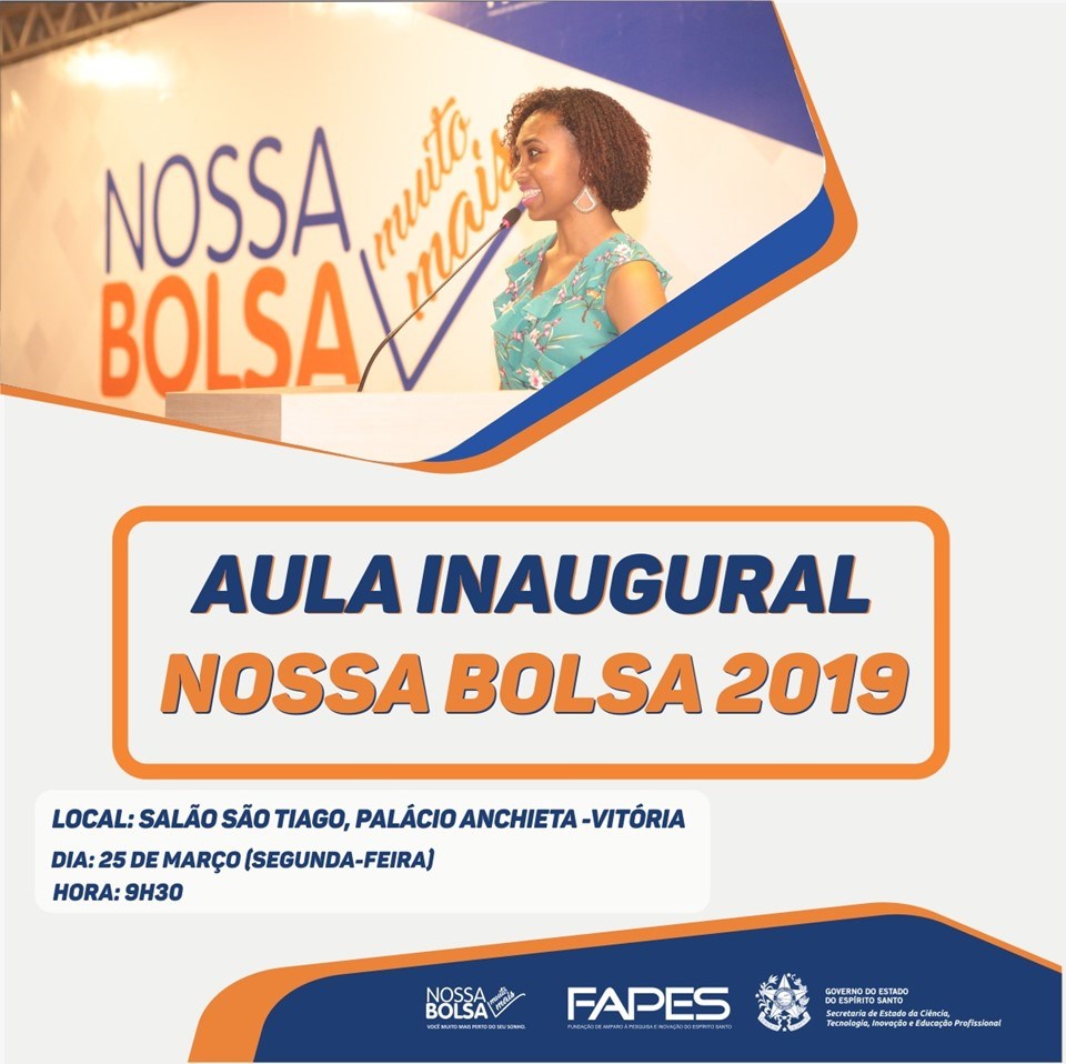 O Programa Nossa Bolsa é uma realização da Fundação de Amparo à Pesquisa e Inovação do Espírito Santo (Fapes), autarquia vinculada à Secretaria de Estado da Ciência, Tecnologia, Inovação e Educação Profissional (Secti). O resultado final do último processo seletivo foi divulgado em 22 de fevereiro.