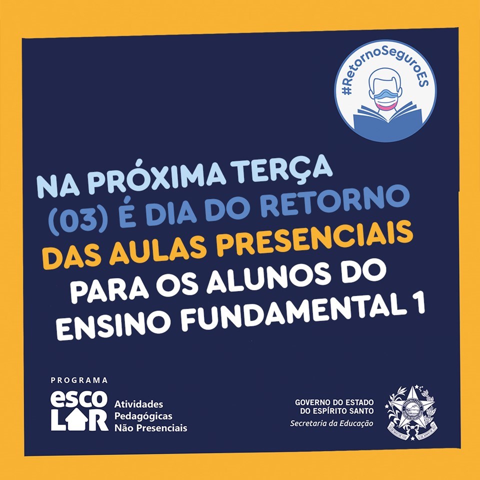 Na próxima terça-feira (03) retornam para as aulas presenciais os alunos do Ensino Fundamental I da Rede Pública Estadual de Ensino. O retorno do Fundamental I foi antecipado em uma semana, conforme divulgado pelo Governo do Estado, durante pronunciamento on-line, na última sexta-feira (23). Desta forma, todas as modalidades de ensino na Rede Estadual já estarão de volta às salas de aula, conforme planejamento da Secretaria da Educação (Sedu).