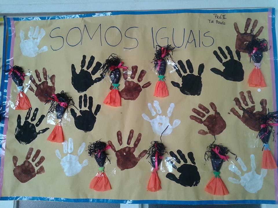Recentemente, durante as comemorações do Dia da Consciência Negra, as crianças do Pré-II elaboraram um quadro com o tema “Somos Iguais”, enfatizando o respeito às diferenças de qualquer tipo.
