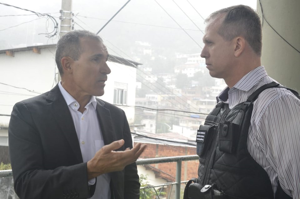 O secretário de Estado da Segurança Pública, Nylton Rodrigues, visitou, nesta segunda-feira (18), o Morro da Piedade, em Vitória. Ao lado do secretário municipal de Segurança Urbana da capital, Fronzio Calheira, Nylton explicou que o Governo do Estado vai doar três câmeras para o monitoramento do bairro, e também do Moscoso e da Fonte Grande. Já a Prefeitura de Vitória vai ceder um imóvel para servir como a base fixa da Polícia Militar.