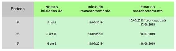 Regras recadastramento
