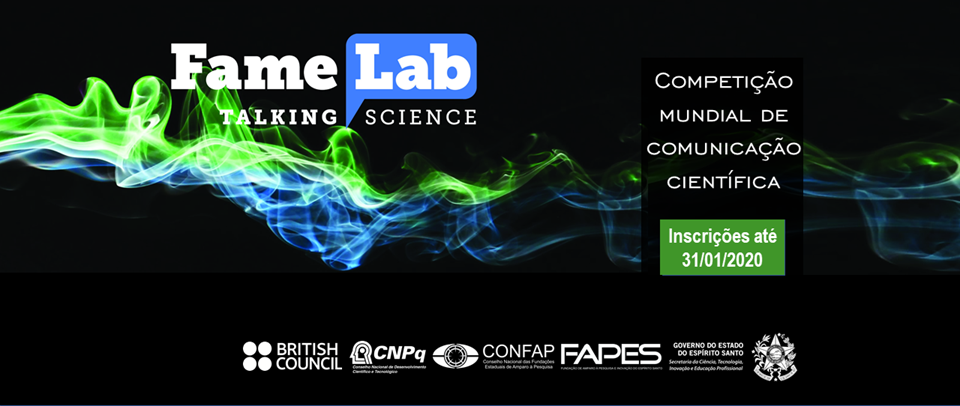 Estão abertas as inscrições de propostas para a competição internacional de comunicação científica do FameLab 2020. O objetivo da chamada é apoiar estudantes a realizarem vídeos de apresentação oral sobre um tópico de ciência ou tecnologia, com a duração máxima de três minutos.