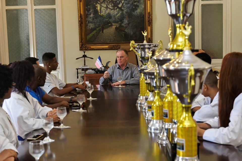 Casagrande recebe campeões do atletismo e do karatê no Palácio Anchieta