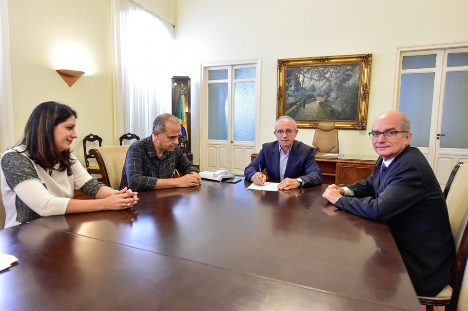 O Governo do Espírito Santo autorizou a publicação do edital para retomada das obras de reforma e ampliação da Escola Estadual João Bley, localizada em Castelo, no Sul do Estado. A assinatura do documento foi realizada, na manhã desta segunda-feira (04), no Palácio Anchieta, onde o governador Paulo Hartung recebeu o secretário de Estado da Educação, Haroldo Rocha, e o diretor-geral do Iopes, Daniel Rosa.