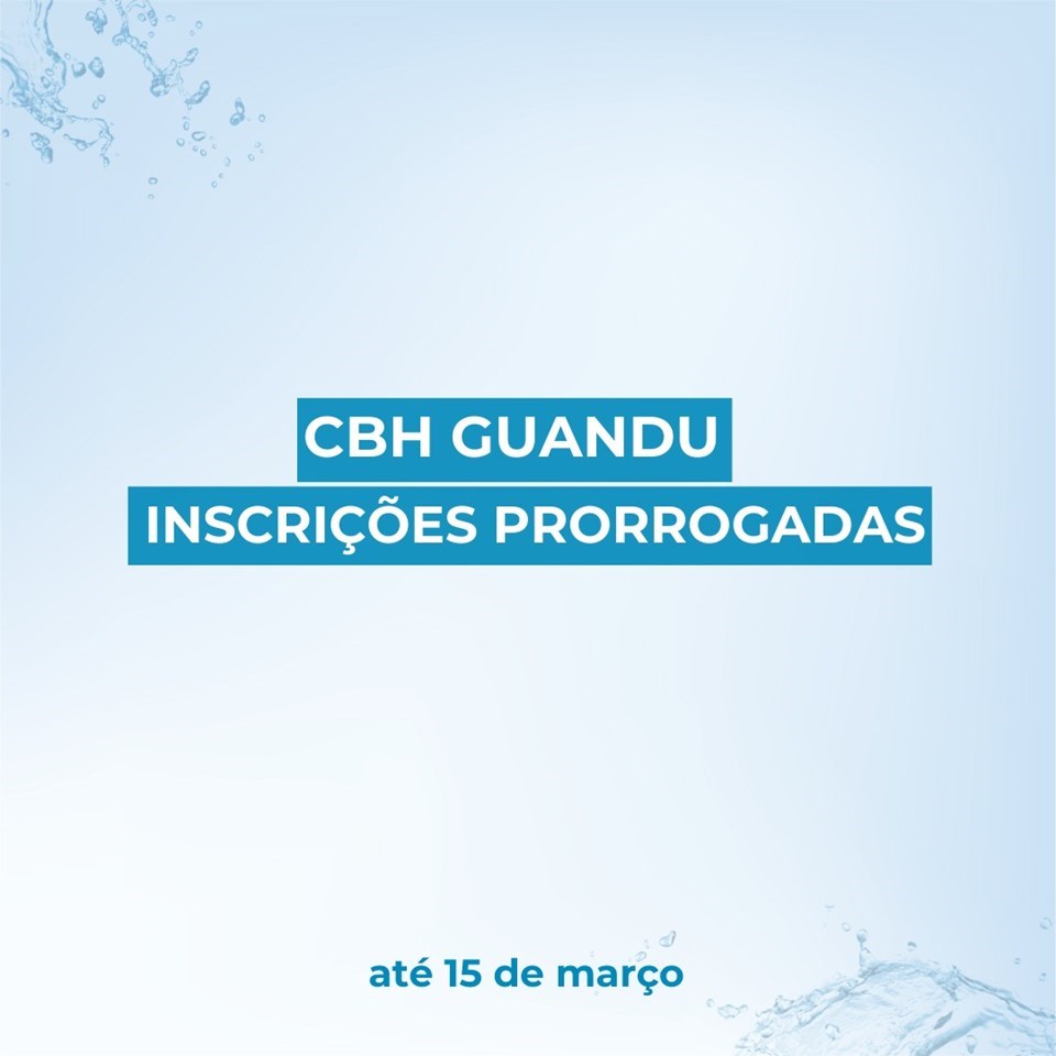 As inscrições foram prorrogadas até 15 de março e serão realizadas de forma presencial. Podem se inscrever instituições representantes dos usuários de água, do poder público e da sociedade civil organizada, atuantes na bacia do rio Guandu.
