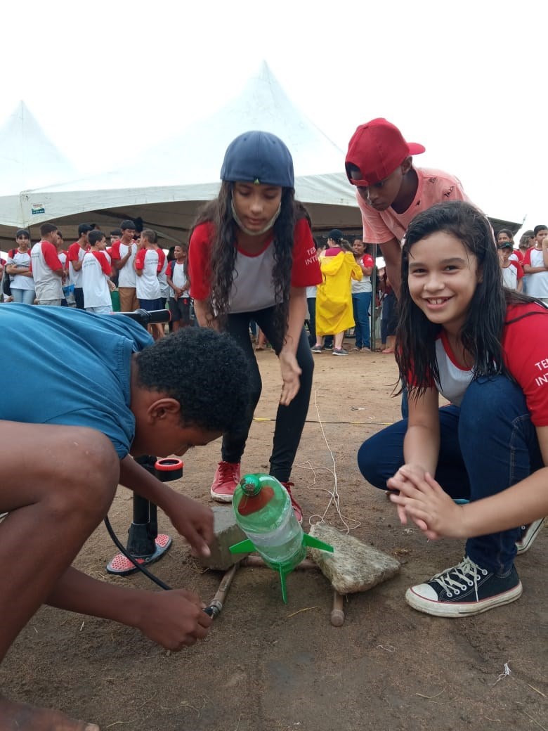 Nesta perspectiva, considerando o potencial motivacional e científico da atividade, a escola organizou um projeto da área que ocorre durante todo o primeiro trimestre. Essa ação pedagógica tem como objetivo proporcionar a aprendizagem de conceitos científicos, a partir da montagem e do lançamento de foguetes, partindo de uma proposta interdisciplinar e contextualizada.