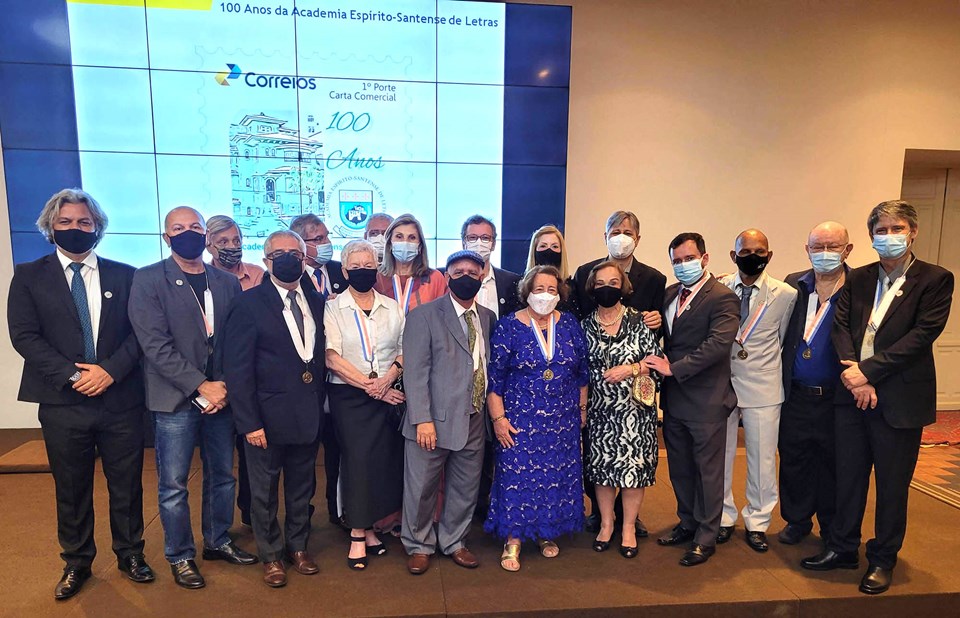 A Academia Espírito-santense de Letras (AEL) comemorou seus cem anos de existência em solenidade no Palácio Anchieta, em Vitória, na noite dessa segunda-feira (20). O evento teve a participação do governador Renato Casagrande e da primeira-dama Maria Virgínia. A programação contou com a apresentação do Quinteto de Cordas da Orquestra Sinfônica do Espírito Santo (Oses), a entrega da Comenda Kosciuzko Barbosa Leão para doze acadêmicos, em reconhecimento aos seus méritos, além do lançamento de um selo comemorativo em alusão ao centenário da AEL.