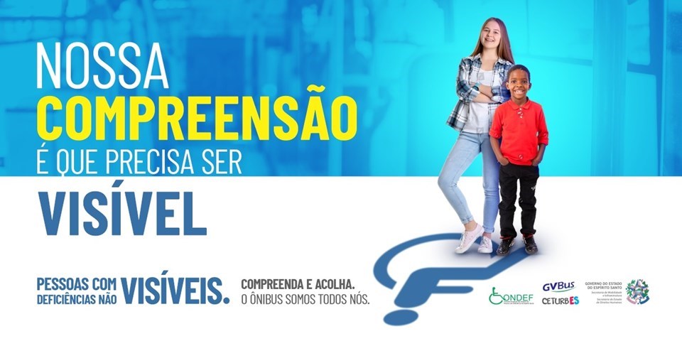 "Nossa compreensão é que precisa ser visível”. Você sabia que que existe uma gama pessoas que circulam pelas ruas e no transporte coletivo, sem que se saiba que elas têm algum tipo de deficiência? Para alertar sobre esse fato e esclarecer, para usuários e colaboradores do transporte coletivo, sobre os direitos garantidos por lei para essas pessoas, como autistas e esquizofrênicos, por exemplo, a Companhia Estadual de Transportes Coletivos de Passageiros do Estado do Espírito Santo (Ceturb-ES) e o Sindicato das Empresas de Transporte Metropolitano da Grande Vitória (GVBus) lançam, nesta terça-feira (28), uma campanha educativa que contará com peças publicitárias e treinamento de motoristas, cobradores e fiscais do Sistema Transcol.