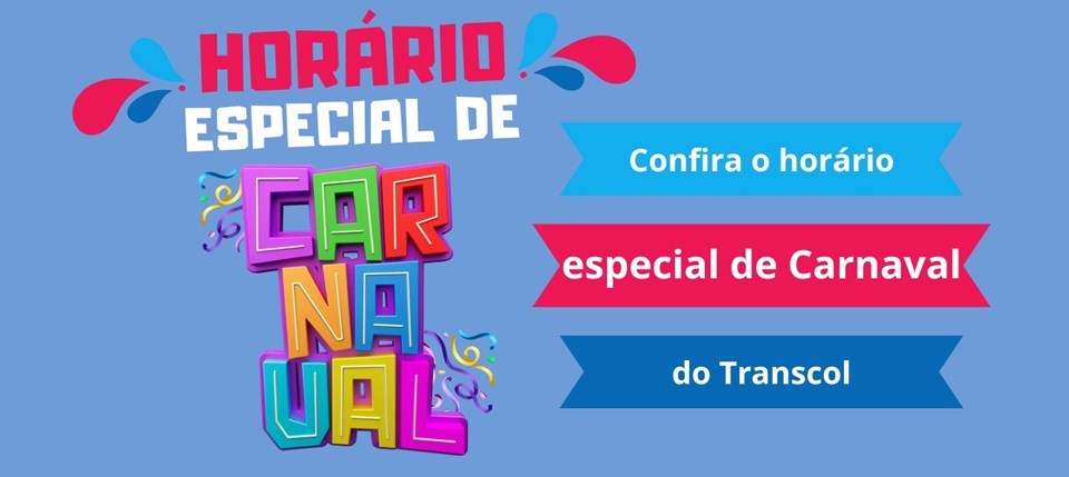 No sábado (1º) e domingo (02), os ônibus funcionarão com quadro horário normal de Sábados e Domingos, com reforço de Verão. Na segunda-feira de Carnaval, as linhas rodarão com quadro horário de Sábado e algumas linhas com quadro de horário de dias atípicos; enquanto na terça-feira, as linhas vão operar com quadro horário de feriado. Em ambos os dias haverá reforço de Verão.