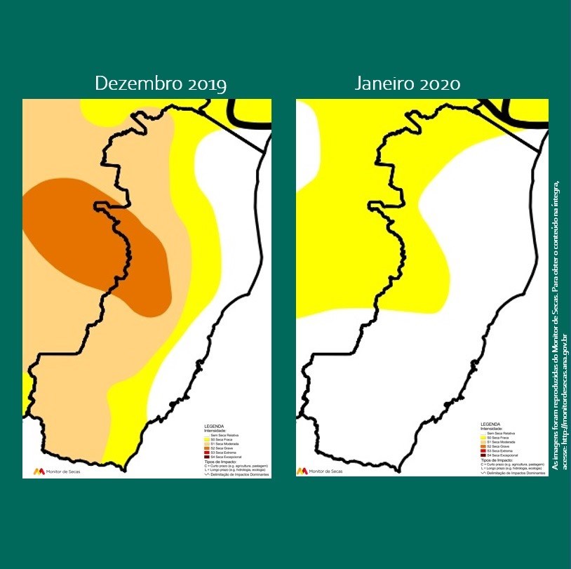 Thábata Brito, que também é meteorologista do Incaper, explicou que os efeitos da seca ainda são observados. "Os indicadores utilizados no traçado do mapa do Monitor apontam para um recuo acentuado na distribuição espacial e na intensidade das secas pelo território capixaba, mas ela ainda está presente no noroeste capixaba. É o que aponta a última atualização do Monitor de Secas para o mês de janeiro quando comparada ao mapa de dezembro de 2019", explicou.