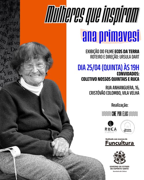 Nesta quinta-feira (25), o projeto "Mulheres que Inspiram", organizado pelo cineclube Cine por Elas, de Vila Velha, apresenta uma sessão especial dedicada à luta das mulheres na agroecologia, com homenagem ao trabalho de Ana Primavesi, precursora do tema no Brasil. O documentário "Ecos da Terra", roteirizado por Fernanda Couzemenco e Ursula Dart, e dirigido pela capixaba Ursula Dart, é o destaque desta edição, oferecendo uma visão inspiradora e contando a história de seis mulheres que fazem da agroecologia uma forma de pensar saúde e movimentos sociais.