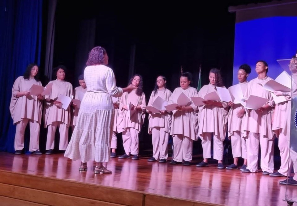 Um total de onze internas participam do coral, que tem como regente a voluntária Simone Vaz Lopes.