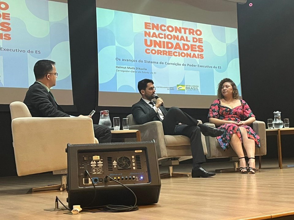O corregedor-geral do Estado, Helmut Mutiz D’Auvila, apresentou as boas práticas do Espírito Santo no painel “Experiências do Programa de Fortalecimento de Corregedorias”, que contou também com a participação do corregedor-geral da Secretaria de Fazenda do Rio Grande do Sul, Mário Luis Wunderlich dos Santos, e da diretora de Responsabilização de Entes Privados da Controladoria-Geral do Tocantins, Tatiane Dias Medeiros.