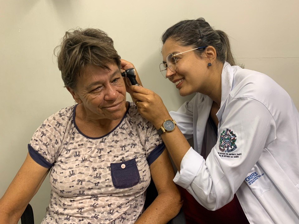 Entre as especialidades oferecidas está a fonoaudiologia na reabilitação auditiva, com a importante missão de devolver a qualidade de vida aos pacientes. E uma dessas situações vem acontecendo com a dona de casa Neuzedy de Fátima Bravim, de 57 anos, que tem perda de audição moderada no lado direito e leve no lado esquerdo. Para a paciente, a reabilitação traz a esperança de poder conseguir um emprego. “Será a primeira vez que vou usar o aparelho e acredito que vai melhorar muito para mim, em poder ouvir melhor e arrumar um emprego”, disse.