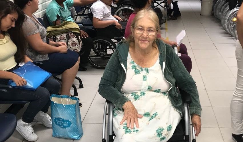 Após sofrer um acidente de moto e perder uma perna no local, Maria de Lourdes Groli, moradora de Aracê, Pedra Azul, precisou de uma cadeira de rodas.