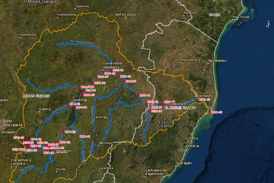 Atualmente, o site traz os resultados de qualidade de água e sedimentos em 39 pontos de monitoramento convencional localizados no rio Doce e afluentes para os seguintes parâmetros:
