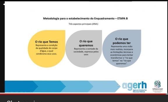 “Nós conseguimos transmitir a experiência do processo de elaboração de propostas de enquadramento, a importância do instrumento para o planejamento, não só da área de recursos hídricos, mas também para a área de saneamento. Nossos convidados Paim e Lanna trouxeram uma visão bem realista sobre os desafios para o alcance das metas de qualidade pactuadas”, analisou Flavia Salim, que coordenou a elaboração do Enquadramento na região hidrográfica Litoral Centro-Norte.