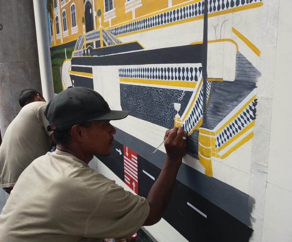 Detentos da Secretaria de Justiça realizam pintura artística em prédio público em Vitória