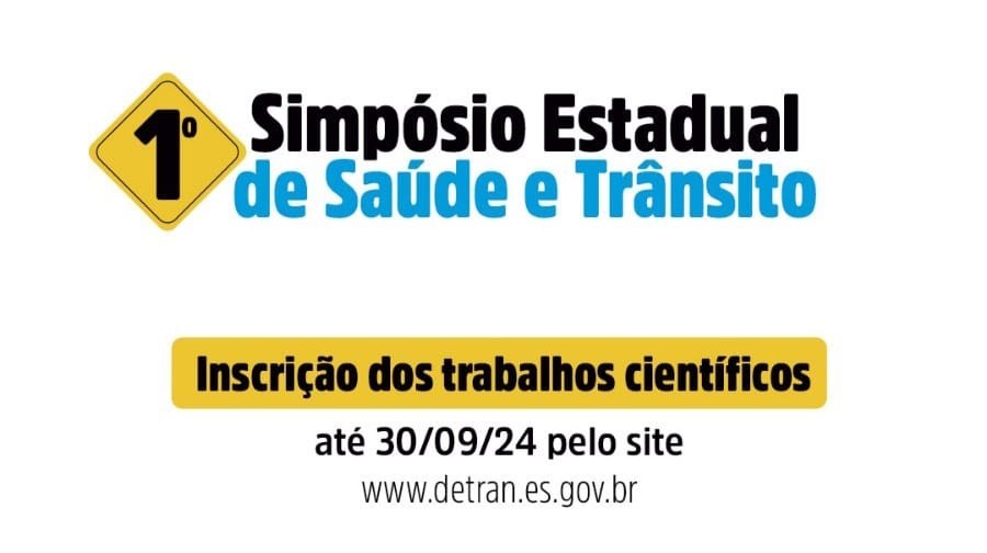 O Departamento Estadual de Trânsito do Espírito Santo (Detran|ES) está com inscrições abertas para a submissão de trabalhos científicos para o I Simpósio Estadual de Saúde e Trânsito, que será realizado pela Escola Pública de Trânsito (EPT), em novembro, em Vitória. O envio dos documentos deve ser feito até o dia 30 de setembro no banner disponível no site www.detran.es.gov.br.