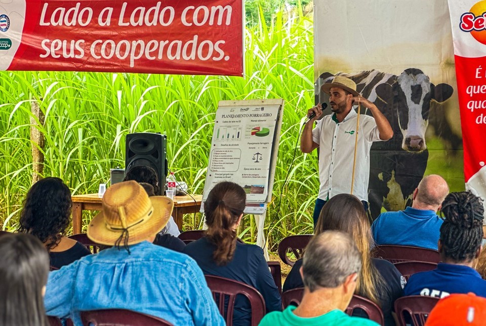 Outro destaque foi a apresentação do sistema de produção do Sítio Santa Maria, referência regional em práticas sustentáveis e na obtenção de leite de alta qualidade. O proprietário Jair Bastos e o técnico do Serviço Nacional de Aprendizagem Rural (Senar-ES), Márcio Caetano, compartilharam detalhes sobre as metodologias aplicadas no sítio e os resultados alcançados.