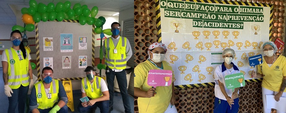 No Himaba, a equipe do Serviço Especializado em Engenharia de Segurança e em Medicina do Trabalho (Sesmt) abordou os profissionais para refletir sobre o papel de cada um na prevenção de acidentes. Com um mural montado próximo à área verde, os servidores puderam escrever uma mensagem respondendo à pergunta “O que eu faço para o Himaba ser campeão em prevenção de acidentes?”. A ação também contou com orientações sobre distanciamento, além da higienização das mãos e das canetas com álcool.
