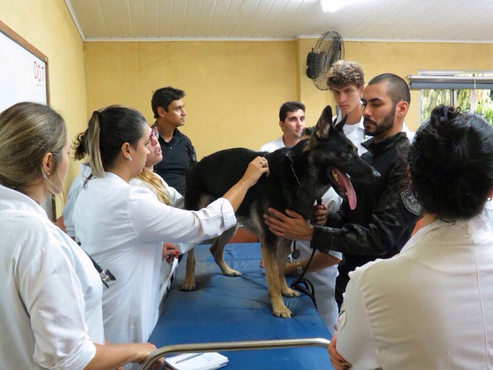 Na ocasião, os alunos também realizaram um mutirão para avaliar e vacinar os cães usados pelo grupamento em suas operações. Os estudantes também tiveram uma aula prática no canil do GOC, localizado no complexo prisional da Glória.