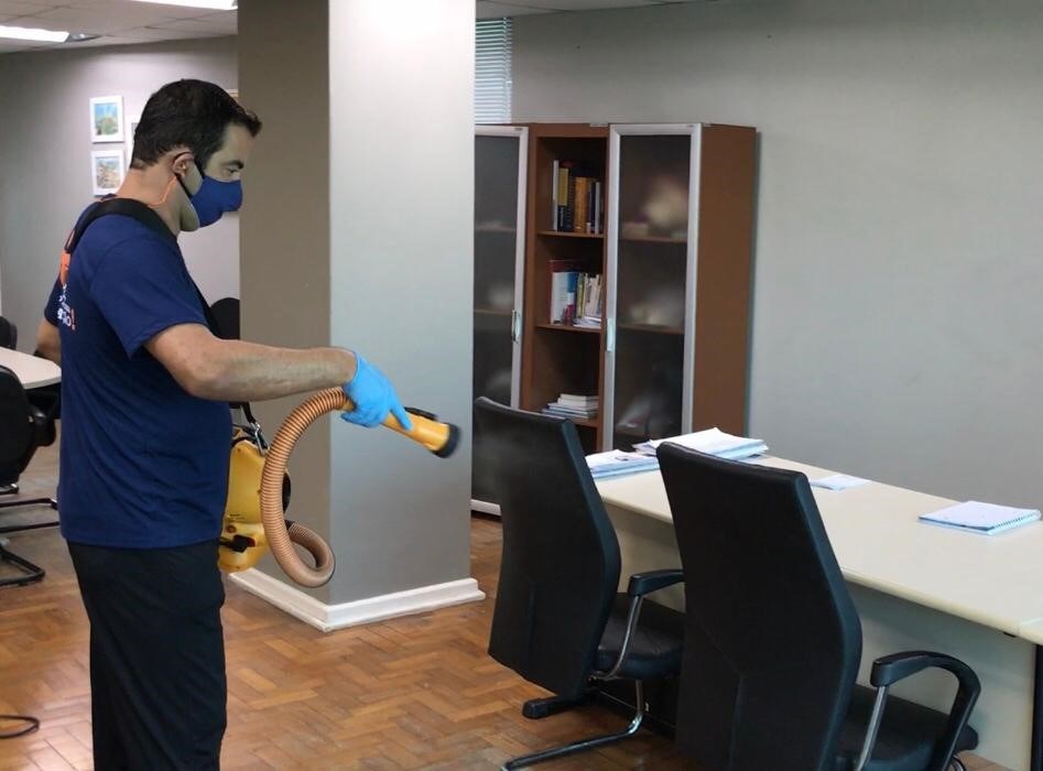 O procedimento consiste na aplicação de produto desinfetante através da pulverização de micropartículas, com a criação de névoa que cobre toda a superfície dos ambientes. O produto, que não é nocivo à saúde humana, age contra inúmeros microrganismos como vírus, bactérias, ácaros, fungos, mofo e odores.